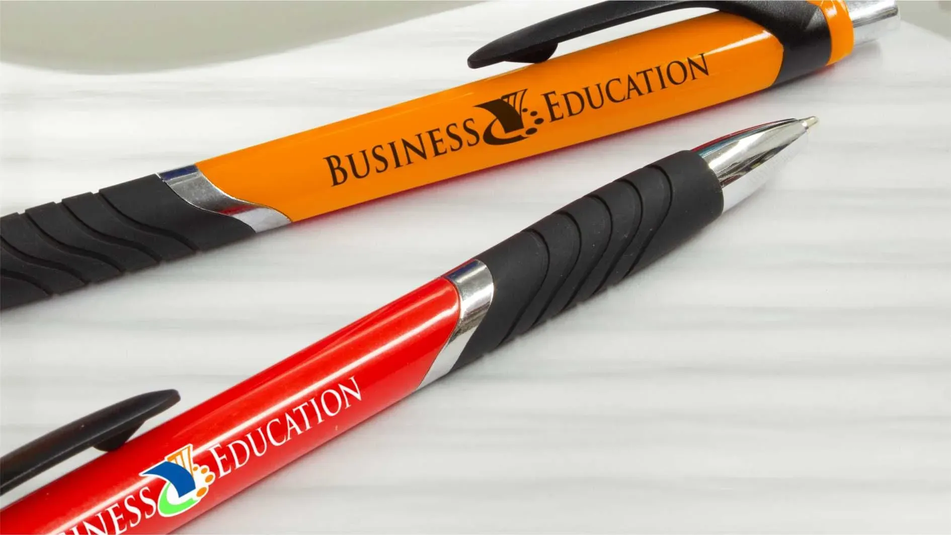 Custom branded promotional pens — printed or engraved (plastic, metal & eco) Plastic, aluminium/brass and eco options (bamboo, recycled rPET, wheat-straw blends) with classic or soft-touch barrels, stylus tips, and black or blue ink.