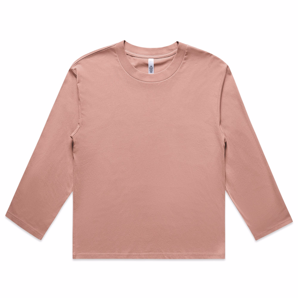 The Women’s Martina L/S Tee (4071) is a relaxed, drop-shoulder long sleeve cut to a mid length. Made from 180 GSM, 28-singles 100% combed cotton, it provides a smooth surface for decoration. Neck ribbing, side seams, shoulder-to-shoulder tape and double-needle hems add durability, and the fabric is pre-shrunk to help minimise shrinkage after washing.
