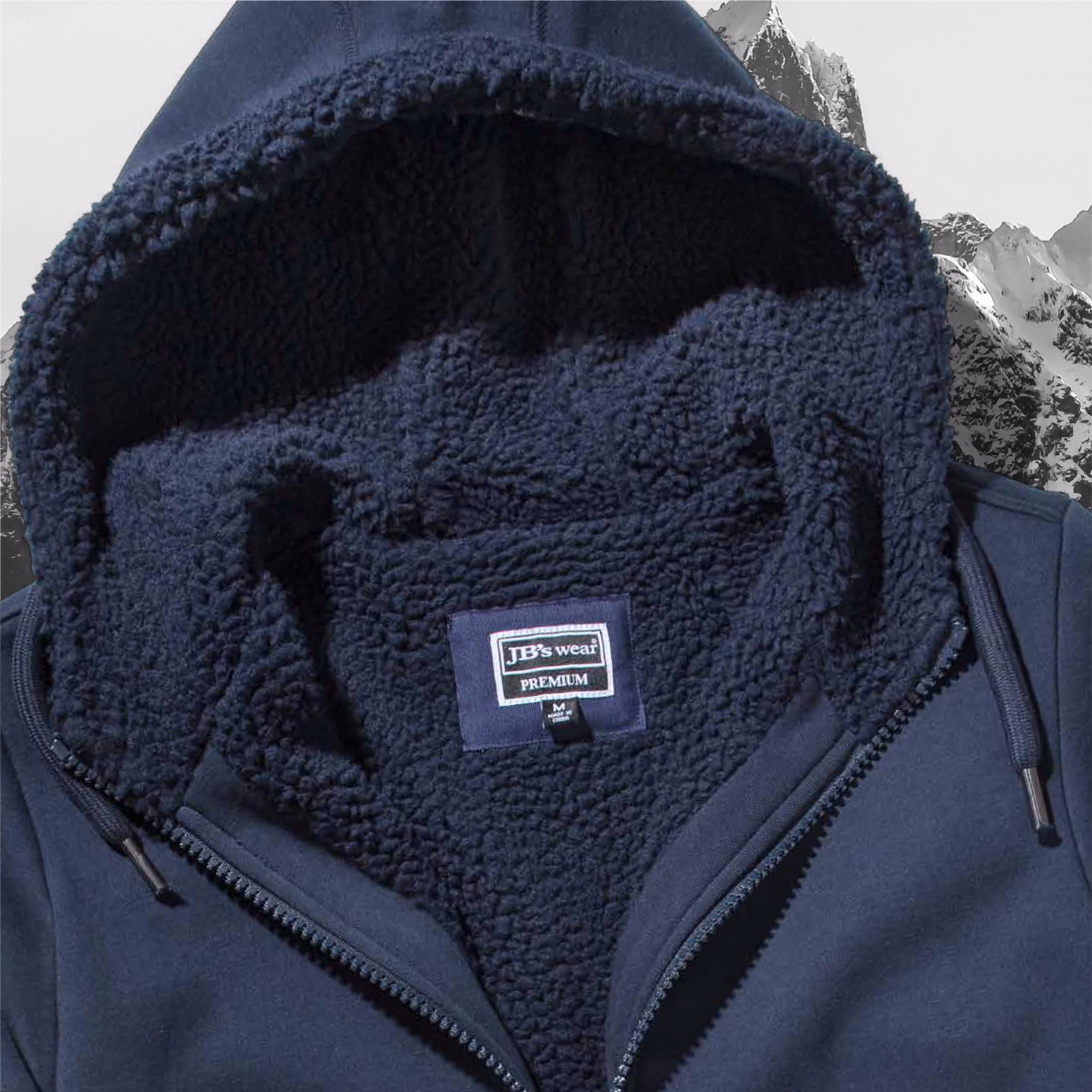 Built for cold days, this urban fit zip-through uses a 430 GSM bonded construction that pairs a 65% polyester, 35% cotton jersey outer with a soft shepherd fleece interior. It has a contrast fleece lining, full zip front and practical pockets, with set-in sleeves and 2x2 rib cuffs and hem for a tidy finish.