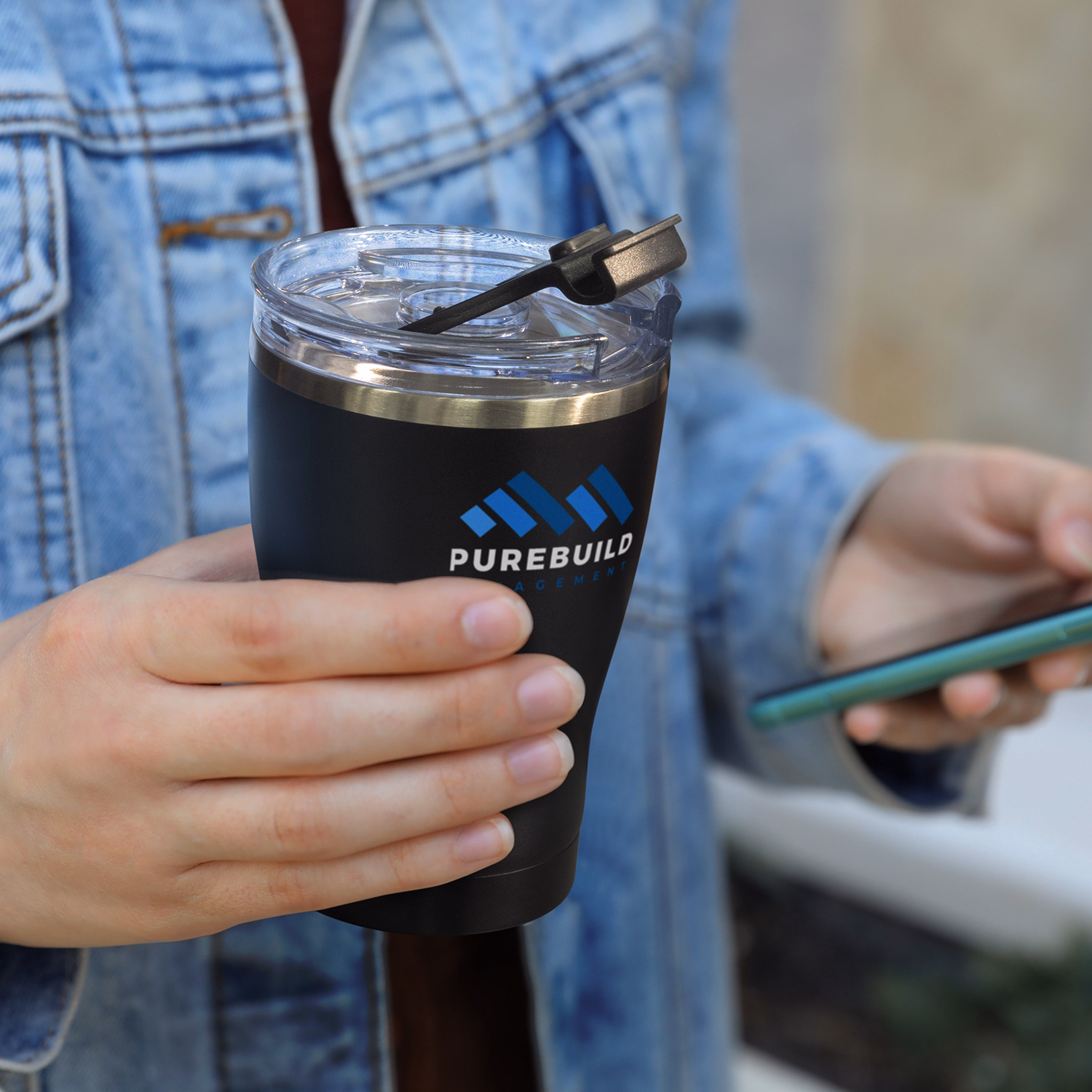 Double-wall vacuum stainless steel maintains temperature while staying comfortable to hold. The transparent push-on lid uses a colour-matched flip closure for controlled sipping. A tough powder-coated exterior delivers a sleek, modern finish. The curved silhouette provides comfortable handling and a contemporary profile. Branding options include pad print or laser engraving; engraving reveals shiny steel. Each cup is supplied in a natural gift box.