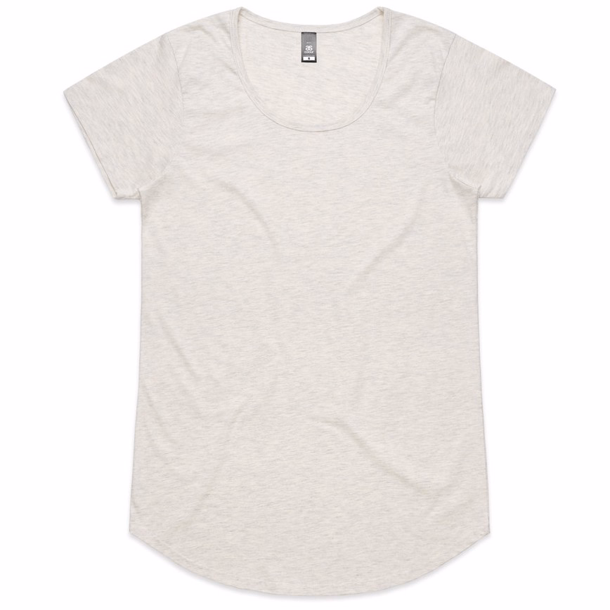 A light, easy-wear women’s tee with a contemporary shape, the AS Colour Women’s Mali Tee (4008) combines a scoop neck, capped sleeves and a curved hem with 150 GSM, 34-singles 100% combed cotton. The smooth print surface helps logos sit cleanly, while self-fabric neck binding, side seams and double-needle hems add durability. Marle colours include 15% viscose for a soft, heathered look, and the fabric is pre-shrunk to help minimise shrinkage.