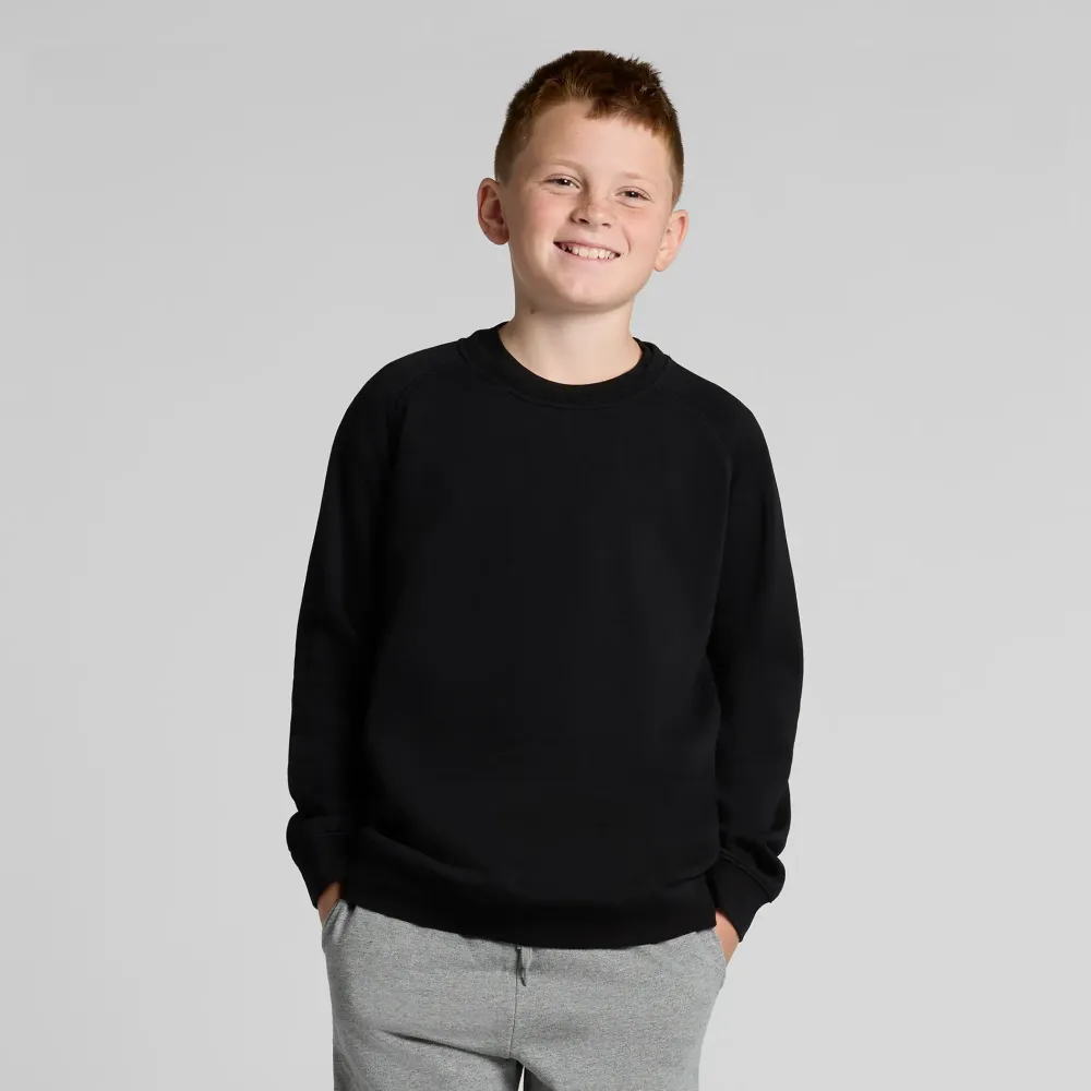 A youth regular fit crew in 290 GSM anti-pill CVC fleece made from 80% cotton, 20% polyester. The AS Colour Youth Supply Crew (3031) has raglan sleeves for easy movement, with neck and sleeve cuff ribbing to help the jumper keep its shape. The fabric is pre-shrunk to help minimise shrinkage after washing.