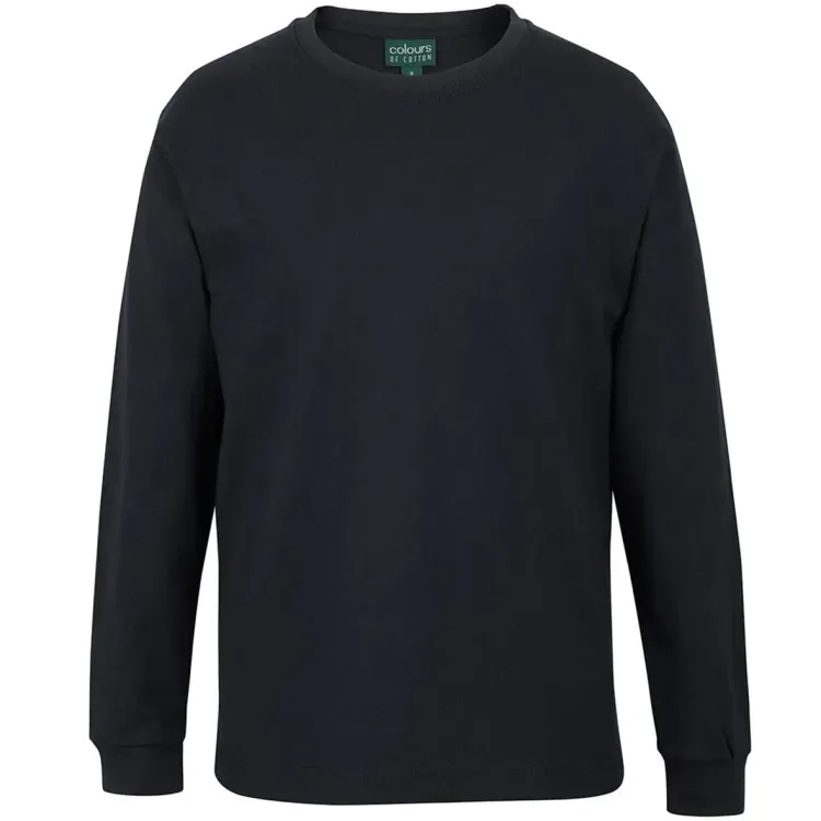 Built in a classic fit from heavy 190 GSM ringspun jersey, this long sleeve tee uses breathable cotton with an elastane rib crew neck to hold its shape. Self-fabric tape at the neck and shoulders adds stability, while twin needle seams and vertical side seams help the body stay true. Ribbed cuffs give a tidy finish. It meets AS 4399:2020 sun protection requirements. JB’s Wear C of C Kids & Adults Long Sleeve Tee 1LS custom printed suits schools, clubs and team kits.