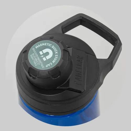 Screw-on lid with carry handle; magnetic cap parks securely while drinking.