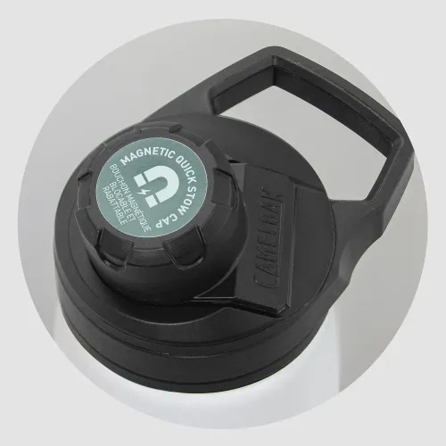 - Innovative magnetic cap stows securely while drinking