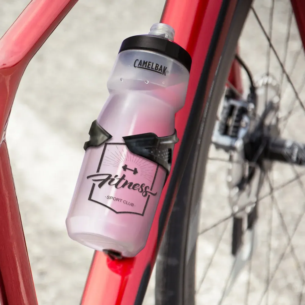 CamelBak Podium is a 700 ml bike bottle built for quick hydration, featuring an easy-squeeze body and a secure screw-on cap with a high-flow, self-sealing bite valve. The cap includes a lock to stop leaks when not in use, and the form factor fits standard bicycle bottle cages. As a branded giveaway, it leverages the CamelBak name—widely recognised in hydration—for added recipient appeal. Decoration is applied by rotary screen print wrap.