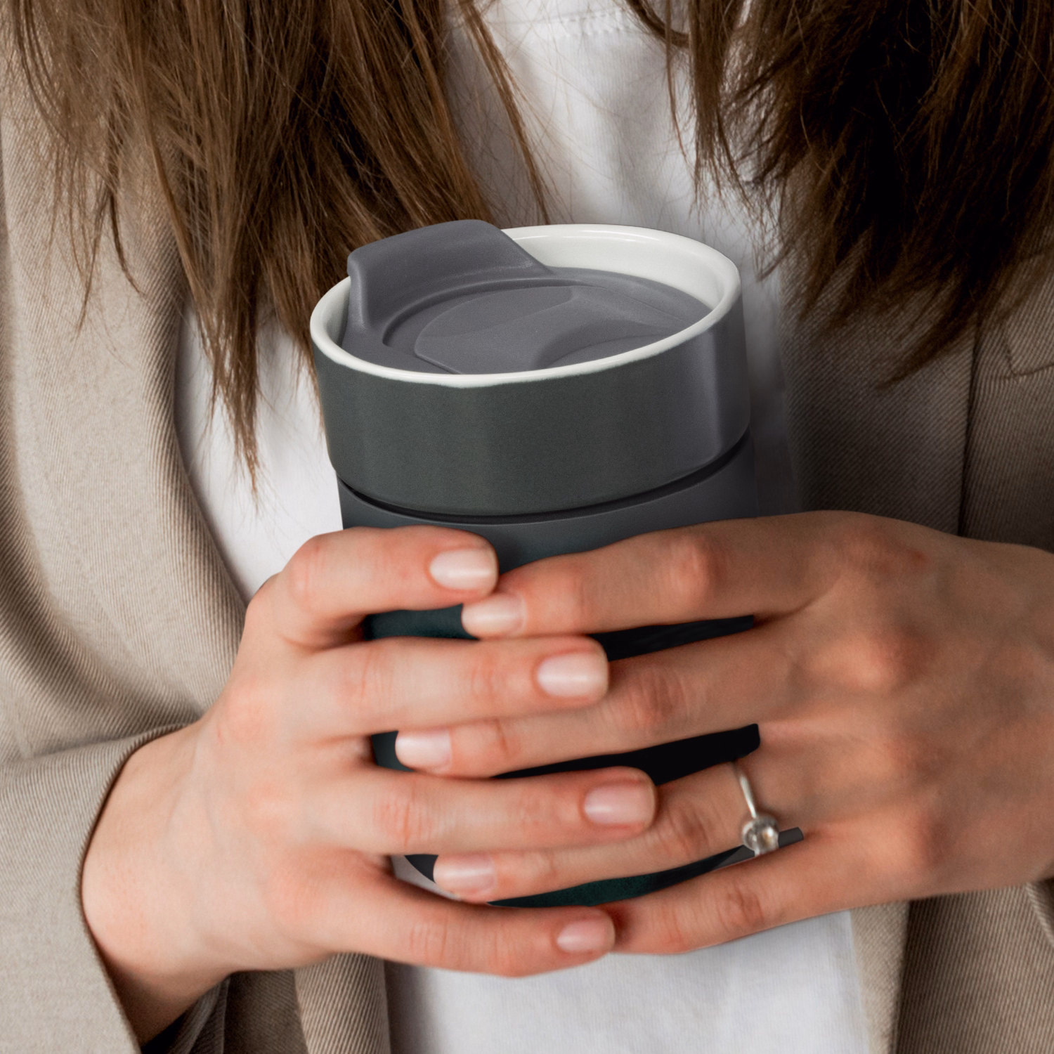 A design-led ceramic cup paired with a heat-resistant silicone casing for confident handling. The slide-closure lid insert is easy to remove for cleaning and reassembly. Its smooth ceramic body and integrated casing create a neat, contemporary profile. Branding is offered on the silicone via debossing for a subtle, permanent mark. Each unit is supplied in a natural gift box for tidy presentation. Care is simple: hand wash only to protect the finish and branding.
