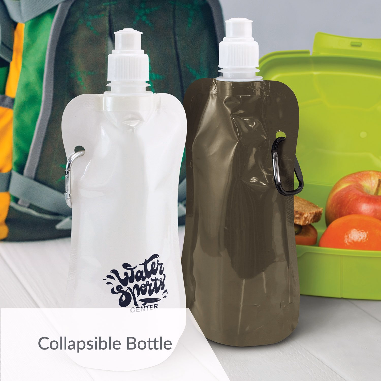 Collapsible Bottle is made from PET and is BPA-free. A secure screw-on sipper lid supports easy hydration on the move. The smooth, gloss finish gives a tidy, professional appearance. When empty, the collapsible body folds flat to reduce bulk, and the integrated carabiner clips to bags or belts. Custom branding is applied by pad print for accurate, consistent logos. Hand washing is recommended to preserve the bottle and print.