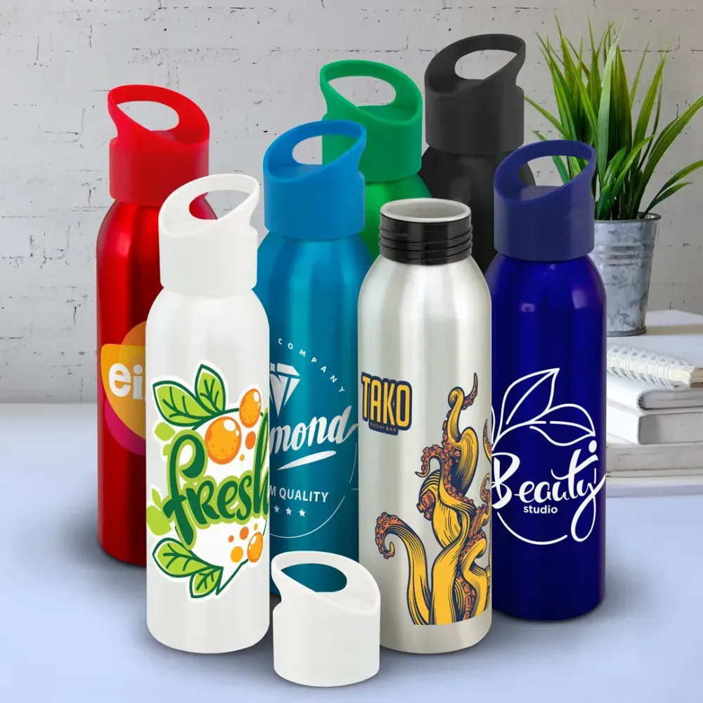 Eclipse is a 700 ml single-wall aluminium bottle. It features a secure screw-on polypropylene lid with a silicone seal. A built-in carry handle is integrated into the lid. Silver presents a shiny steel look; coloured bottles are translucent, while white is gloss painted. Branding options include rotary screen print or vivid full-colour rotary digital, with digital print available for the gift box sleeve. The bottle is BPA-free and should be hand washed; it is not suitable for carbonated liquids.
