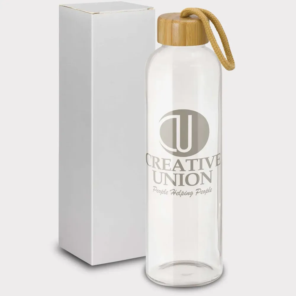 - Deluxe 600ml borosilicate glass bottle with screw-on natural bamboo lid