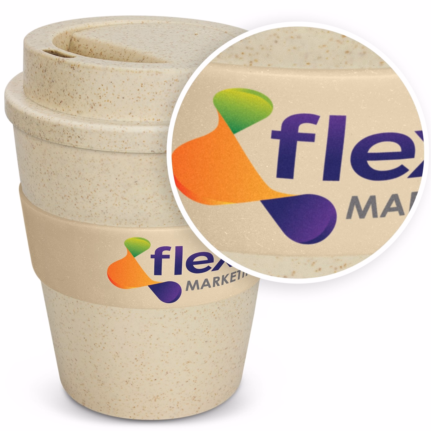 Choose band colours from standard options to match brand palettes while the cup/lid remain natural.
