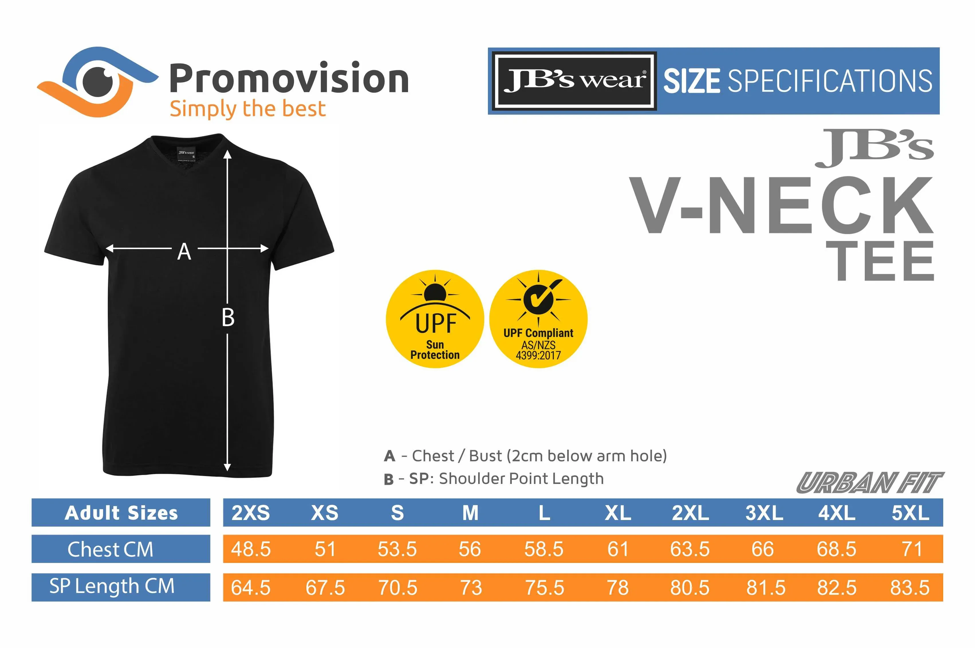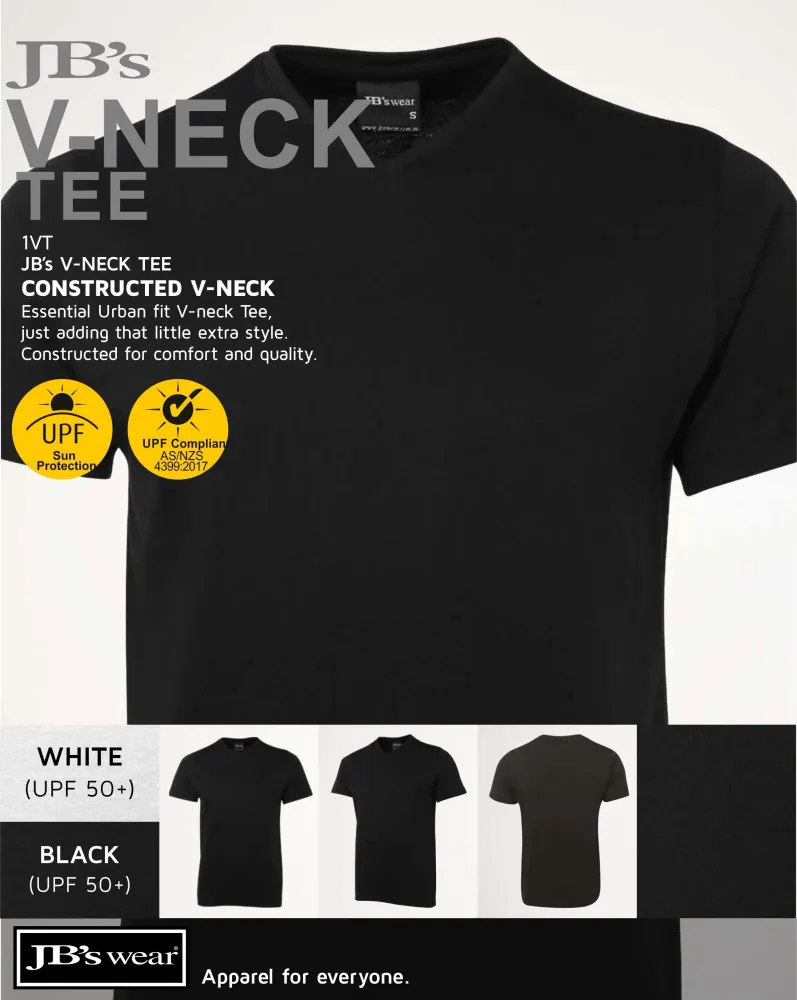 The JB’s Wear V-Neck Tee 1VT pairs an urban fit with heavy 190 GSM ring spun jersey for a soft feel and dependable structure. A shape staying elastane V-neck keeps the neckline tidy, vertical side seams help minimise twist through wear and wash, and the tee complies with AS 4399:2020 for UPF protection. Made from 100% cotton for comfort.