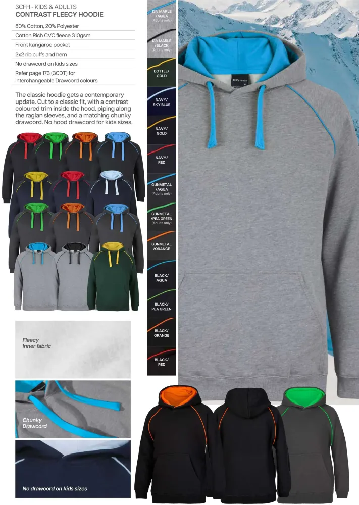 JB's Kids & Adults Contrast Fleecy Hoodie 3CFH