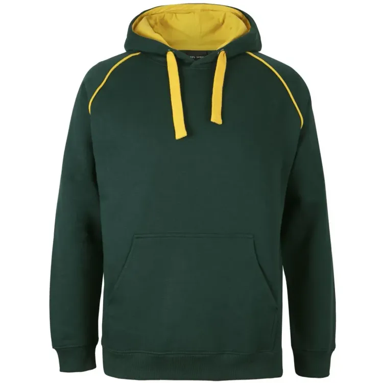 A classic fit pullover made from 310 GSM cotton rich CVC fleece for warmth and easy care. The contrast hood lining and pop-colour drawcord create a bold two-tone look that stands out for teams and clubs. It features a roomy kangaroo pocket, set-in sleeves, and 2x2 rib cuffs and hem to hold its shape. JB’s Wear Kids & Adults Contrast Fleecy Hoodie 3CFH custom printed is a reliable choice for school leavers, staff wear and supporter gear.