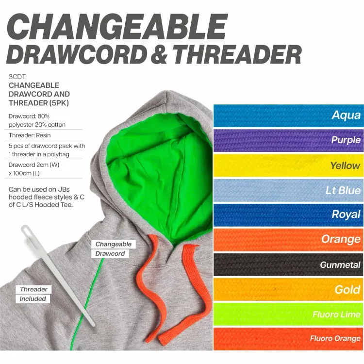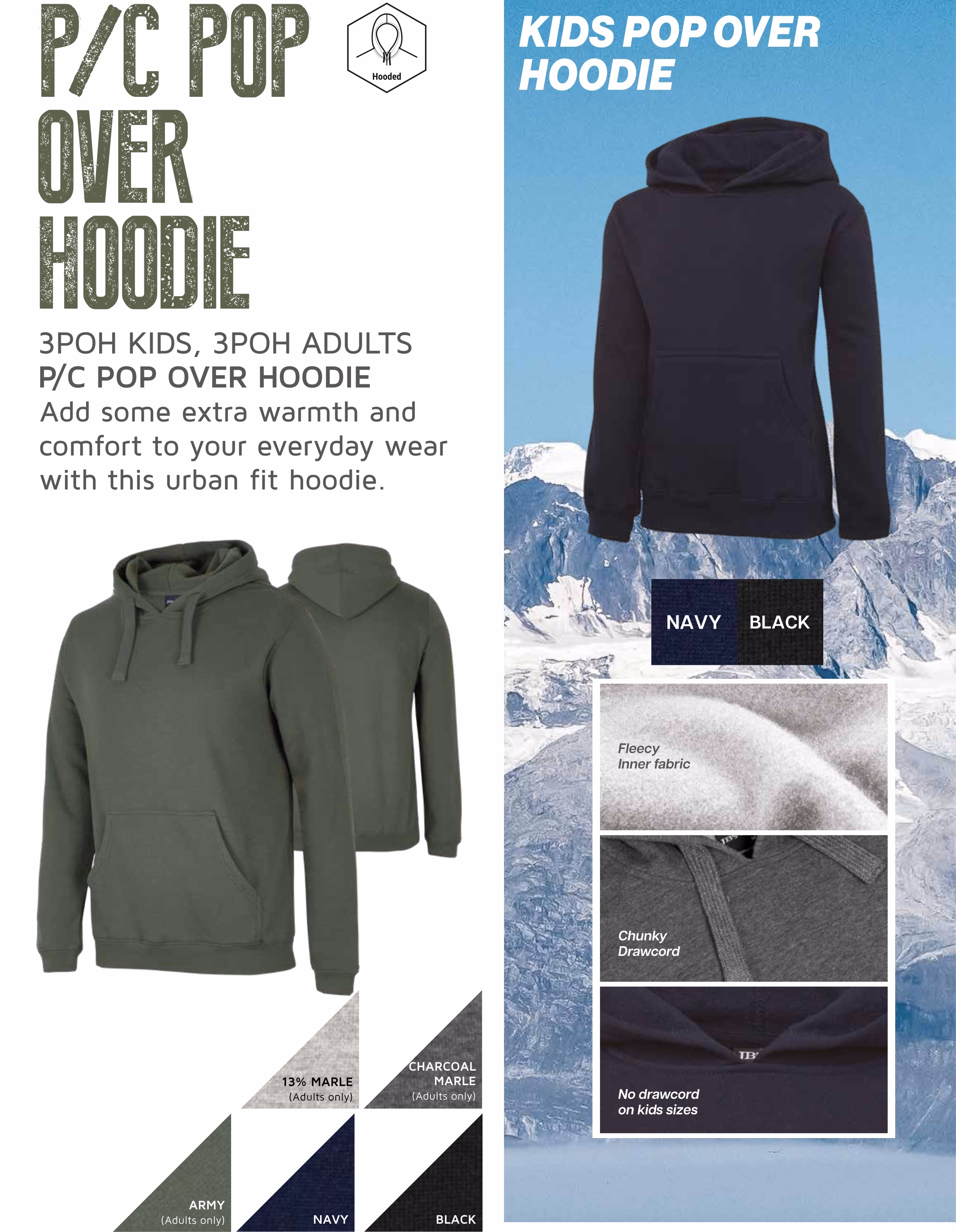 A versatile pullover in an urban fit, this hoodie uses 280 GSM fleece for reliable warmth and easy care. The main body is a 65% polyester and 35% cotton blend, with marle options noted below. It features a roomy kangaroo pocket, set-in sleeves, and 2x2 rib cuffs and hem with elastane to hold its shape. Interchangeable drawcord colours are available as an add-on, and kids sizes are supplied without a drawcord. JB’s Wear Kids & Adults PC Pop Over Hoodie 3POH custom printed is a reliable choice for teams and club gear.