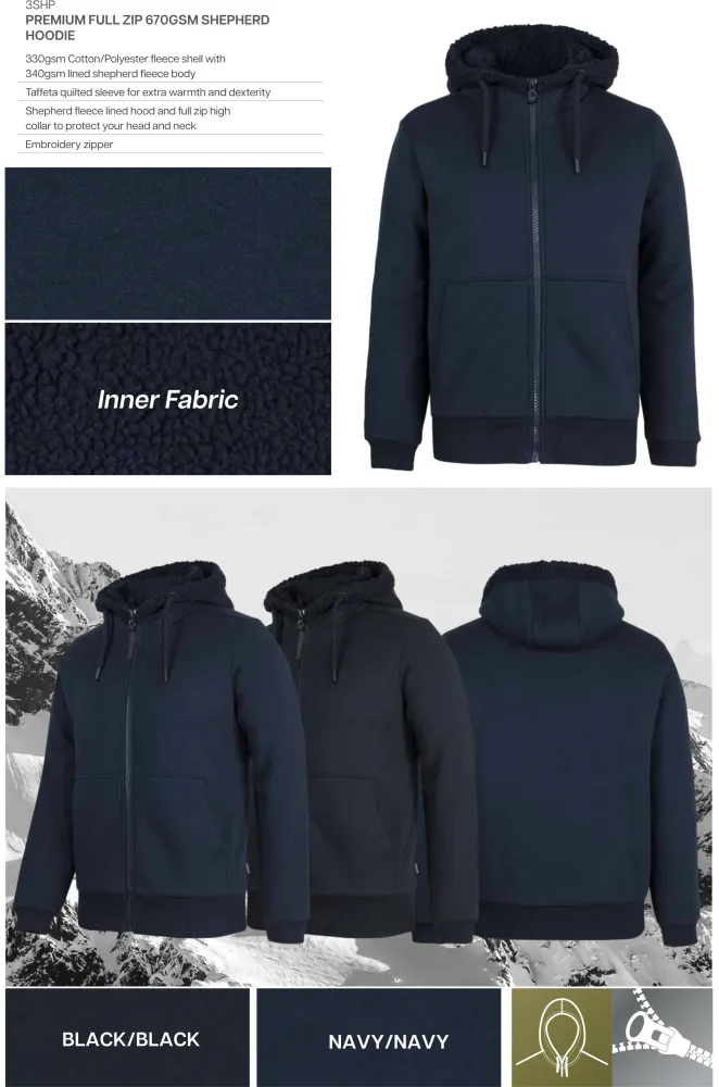 JB's Premium Full Zip 670gsm Shepherd Hoodie 3SHP