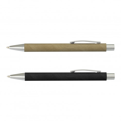 - Retractable ballpoint pen with kraft paper barrel and shiny chrome trim