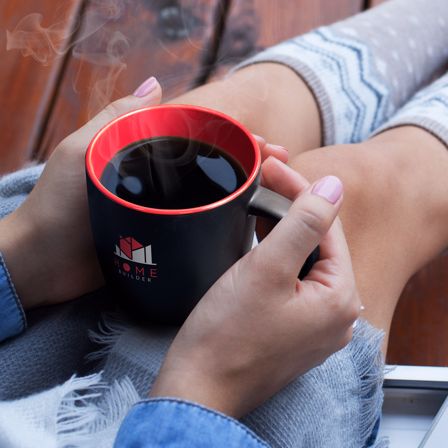 This chic 330ml two-tone ceramic coffee mug pairs a matte glazed exterior with a vibrant gloss glazed inner for a modern look. A comfortable handle ensures a secure grip while you enjoy hot beverages. The single-wall ceramic construction is suitable for hot liquids, and the mug is BPA-free. Each mug arrives in a natural gift box, with an optional full-colour digitally printed sleeve available at additional cost. Handwashing is recommended to protect applied branding; the mug is not dishwasher safe.