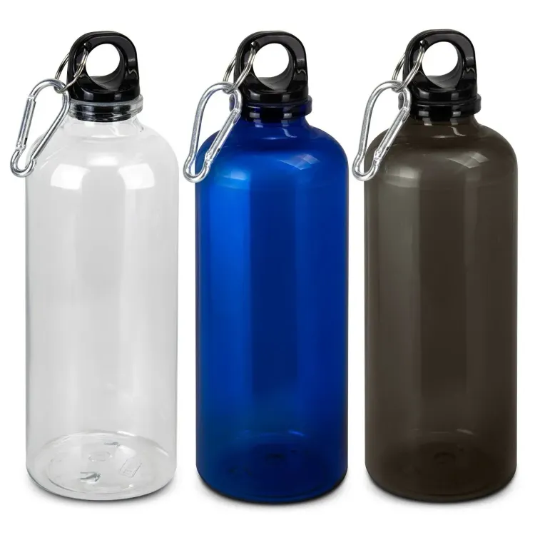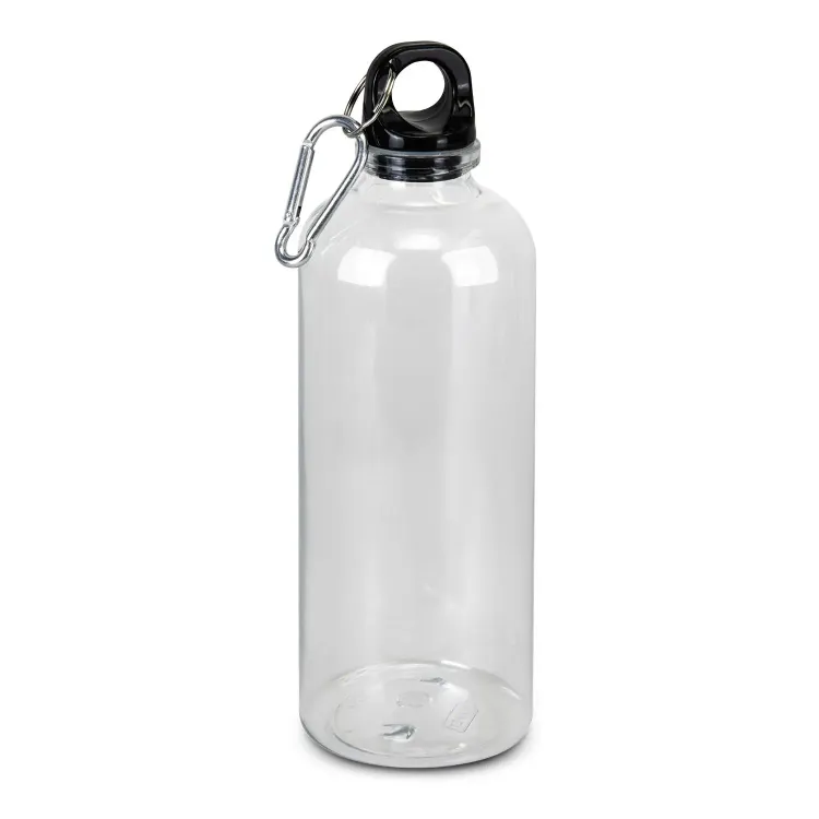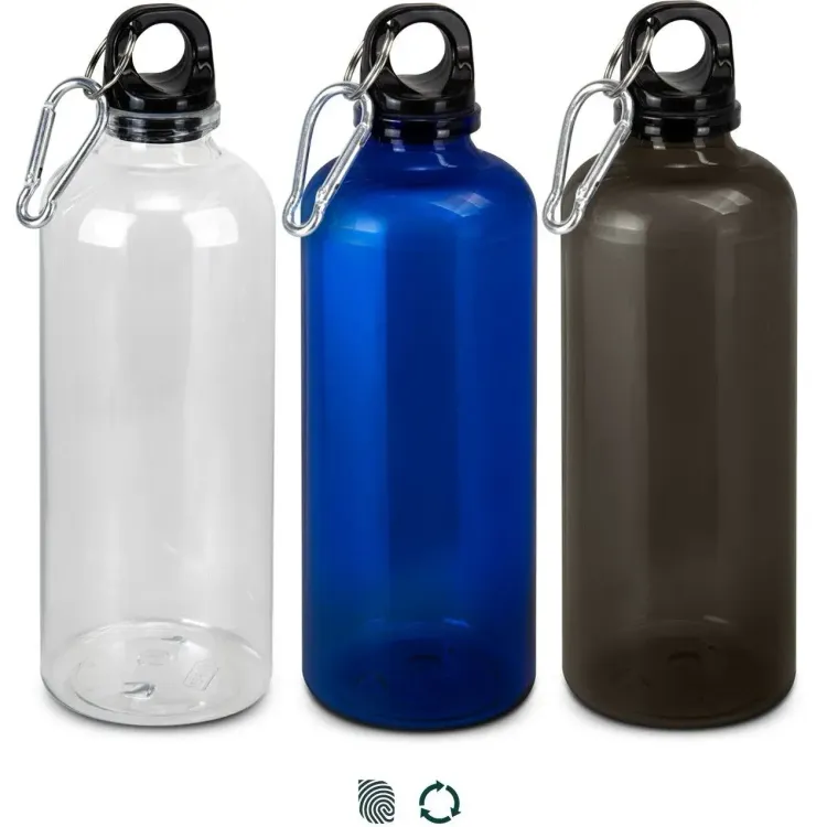 Rivia is a 600 ml bottle made from recycled RPET and is BPA-free. The black screw-on lid closes securely for everyday use. An integrated carabiner clips quickly to bags or gear for easy portability. Decoration is available by pad print or screen print to showcase branding clearly. Supplied loose packed.