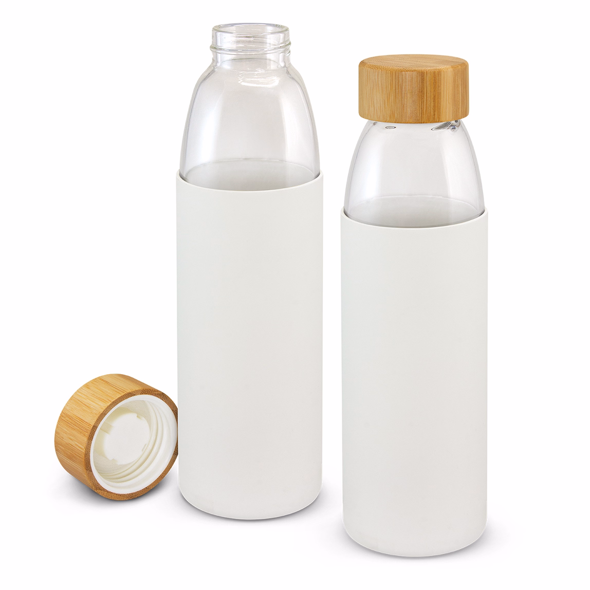 Solstice is an elegant 500ml borosilicate glass drink bottle with a soft-touch silicone sleeve for added protection and grip. The lightweight glass is exceptionally strong and shatter-resistant for dependable everyday use. A secure screw-on natural bamboo lid includes a PP inner and silicone seal. Glass provides a clean, pure taste and a safe, BPA-free alternative to single-use plastic. Use for cold liquids only; it is not suitable for hot or carbonated drinks. Each bottle is presented in a white gift box. Hand wash is recommended; the bottle is not dishwasher safe, and bamboo grain and colour may vary naturally.