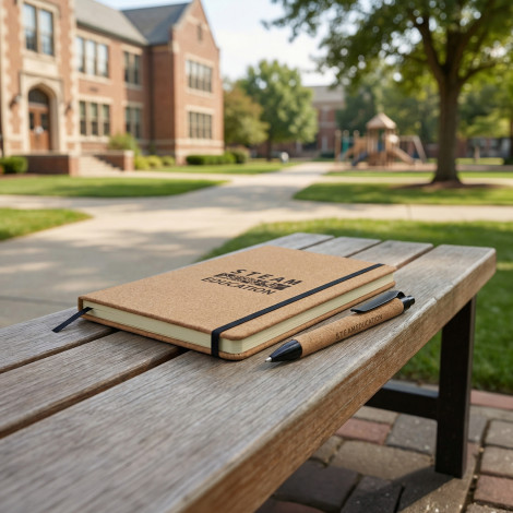 - Medium-sized (approximately A5) hard cover notebook with natural cork finish