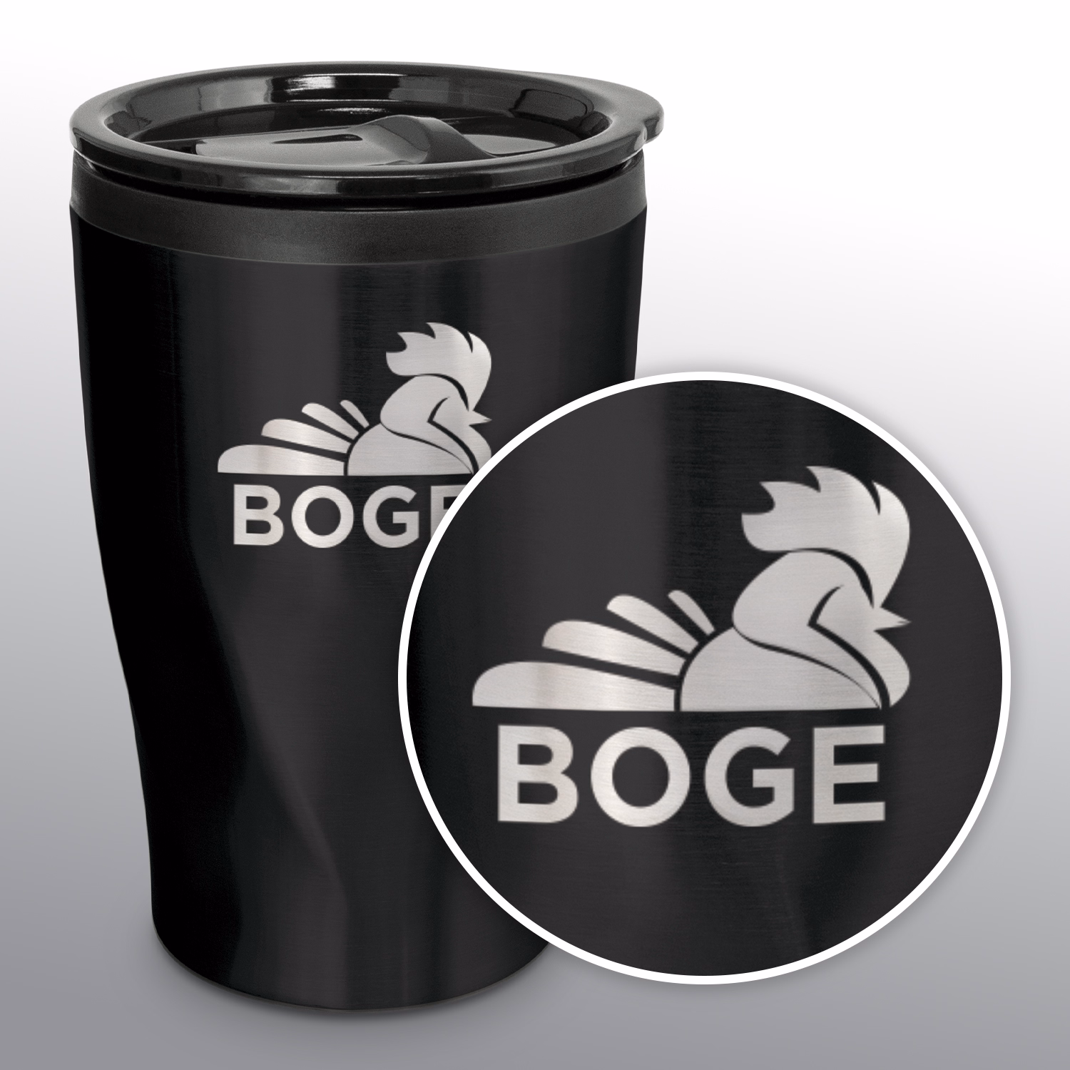 Pad print for precise single or multi-colour logos; laser engraving for a long-lasting mark that etches to shiny steel on coloured finishes. Packaging decoration supported: digital packaging print on the gift box and digital print on the sleeve.